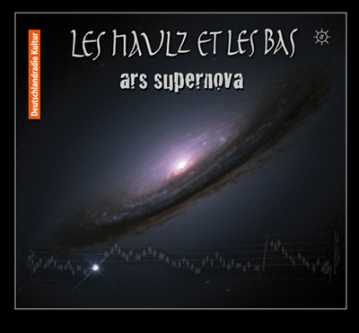 Ars nova ist der mittelalterliche Name für die neue Musik des 13. und 14. Jahrhunderts. Eine Supernova nennt man das kurze helle Aufleuchten eines Sternes durch eine Explosion, bei der der ursprüngliche Stern zerstört wird. Seine Leuchtkraft kann auf der Erde erst wahrgenommen werden, wenn er nicht mehr existiert. Mit ars supernova feiert das Ensemble Les haulz et les bas 700 Jahre Bläsermusik und den Austausch von Materie aus alter Musik und Jazz. Gemeinsam sind beiden Universen unerwartete Harmonien, die Freiheit zum Improvisieren, der Groove, die Lebensfreude und auch die Melancholie. In diesem Projekt klingen die historischen Schalmeien (Vorläufer von Oboe und Saxophon), Zugtrompete, Renaissanceposaune, Dudelsäcke, Zink und Serpent erstmals zusammen mit den modernen Instrumenten Tuba, Saxophon, Posaune, Perkussion und Gitarre.